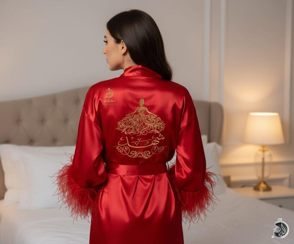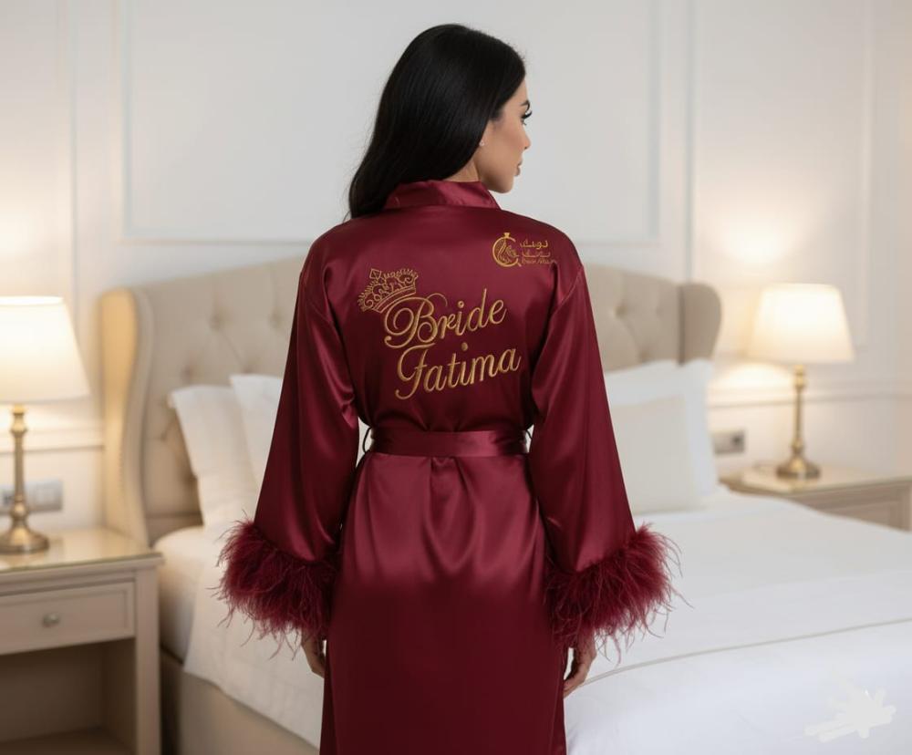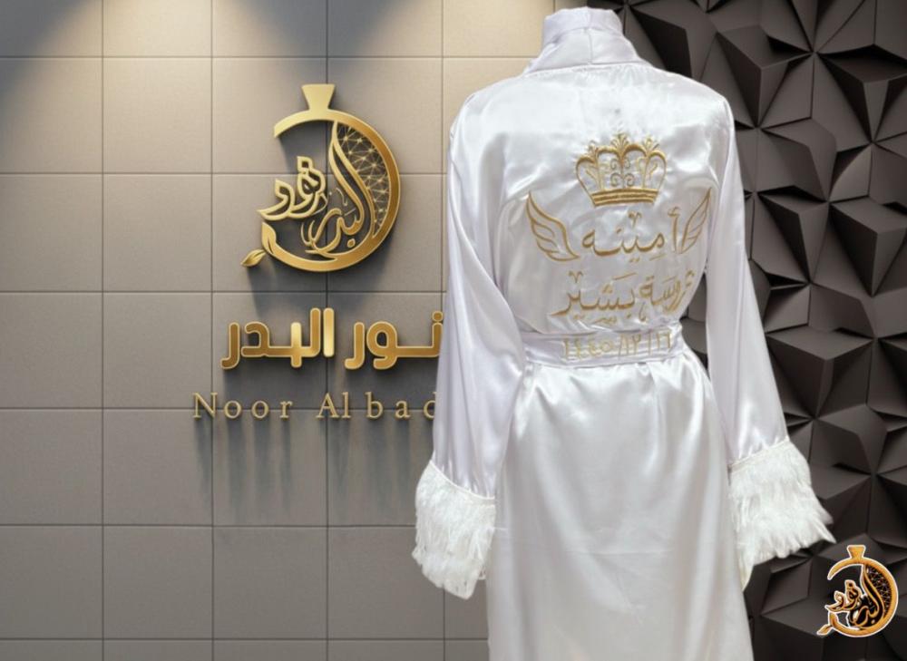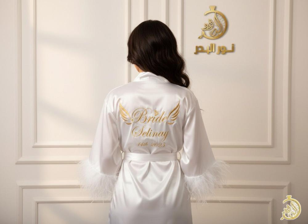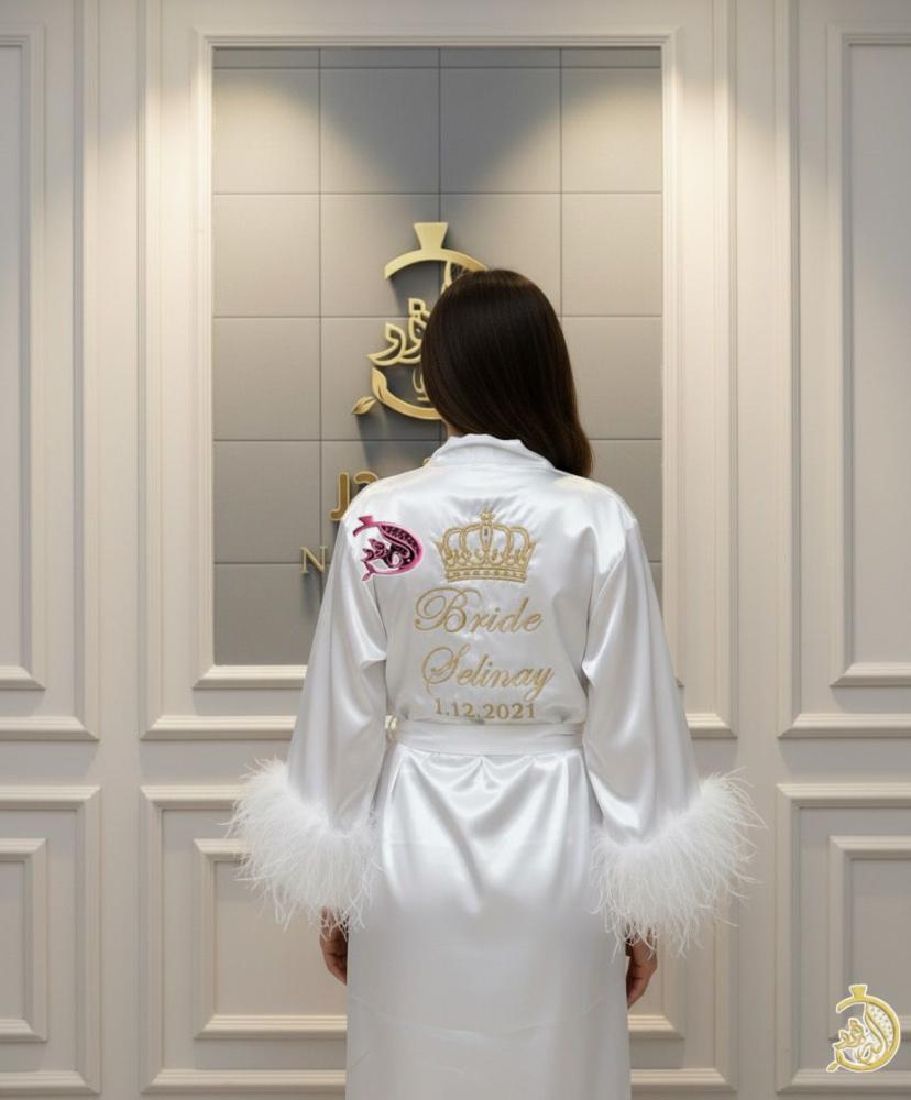 تفصيل وتطريز روب العروسه مع ريش حسب الطلب متوفرة بجميع المقسات